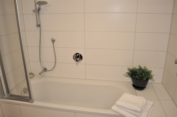 - Bad mit Badewanne, Dusche in der Wanne, Föhn, Waschmaschine